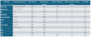 - Phenyl-sulfonic acid bonded phase – phenyl gives some reversed phase character that can be enhanced with METHANOL