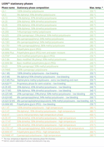 LION GC kolone su u mogućnosti da vam ponude širok spektar stacionarnih faza i fleksibilnost u dimenzijama samih kapilara.