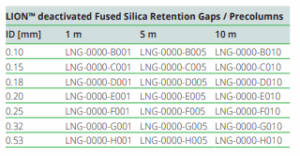 LION deaktivirani retention gaps od fuzionog silicijum-dioksida/pretkolone